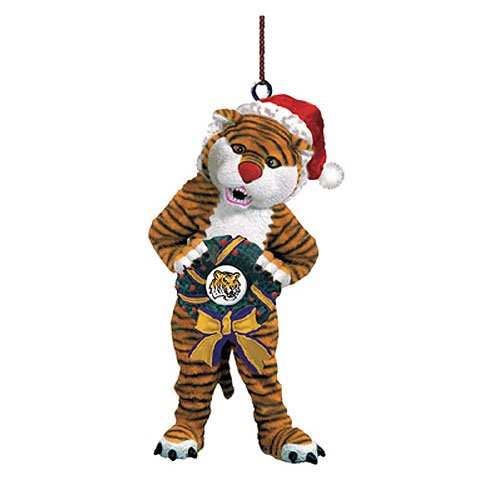 Portrays each team mascot in rich detail and perfectly hand painted! Holding a Holiday wreath that is emblazoned with the team logo, our mascot is sure to be a popular addition to display school and team loyalty for years to come!