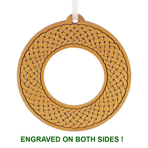 Advent Ornaments "CELTIC WREATH" , Laser Cut and Engraved Wood Christmas Tree Ornament Description:This flat Celtic-Style Christmas Tree Ornament is laser cut and engraved on both sides!. It is approximately 3 inches wide by 3 inches tall.